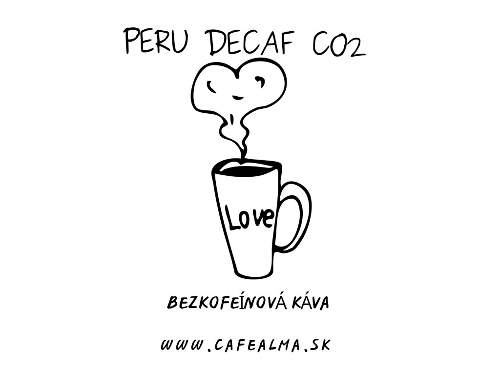 Bezkofeínová káva PERU DECAF CO2 predstavuje výber káv z odrody Arabika (odrody Bourbon, Catimor, Caturra, Pache, Typica), ktoré pochádzajú z rôznych oblastí Peru.