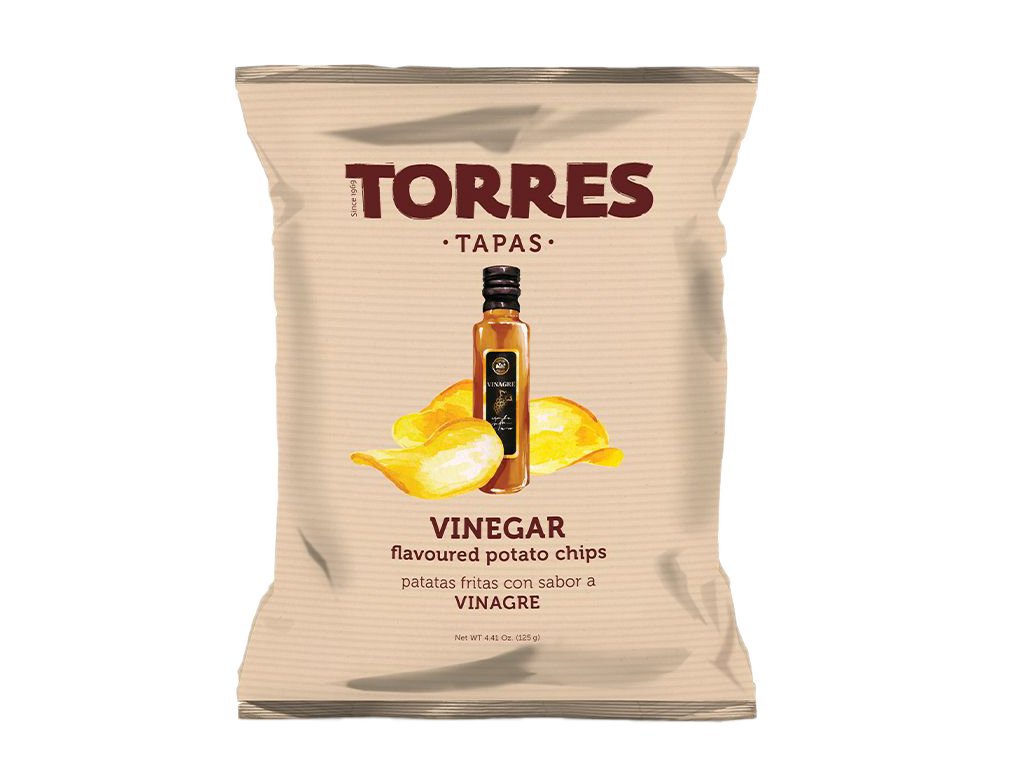 Chrumkavé prémiové zemiakové čipsy TORRES vyrobené z farmárskych zemiakov s dokonale vyváženým pomerom octu.